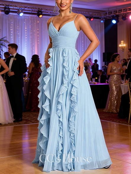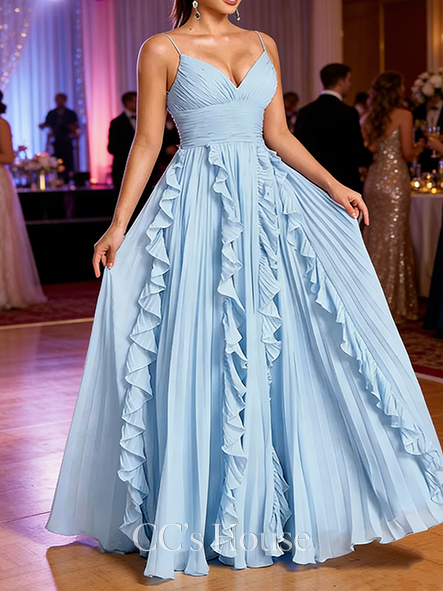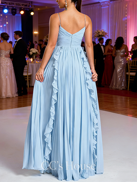 - A-line Flowy Scoop Floor-Length Chiffon Prom Dresses