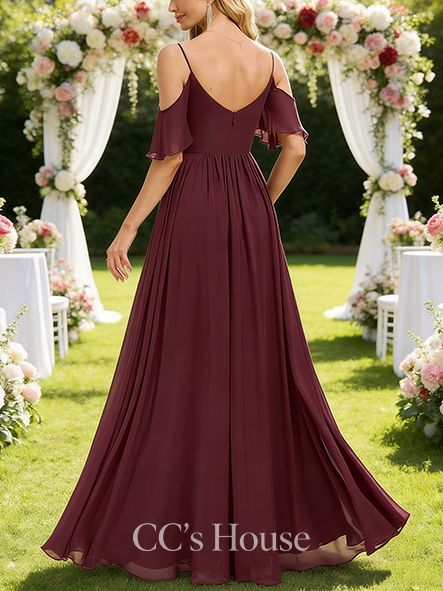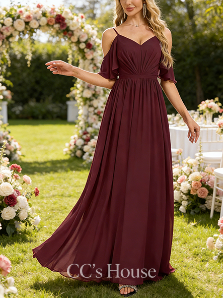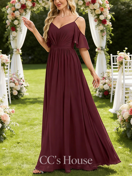 • A-line Enchanting V-Neck Floor-Length Chiffon Bridesmaid Dress With Ruffle