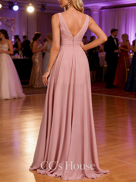 - A-line Flowing V-Neck Floor-Length Chiffon Prom Dresses