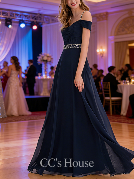 - A-line Sheer Square Sweep Train Chiffon Prom Dresses