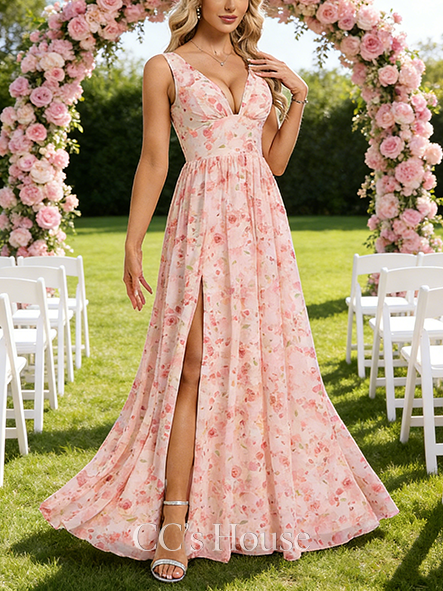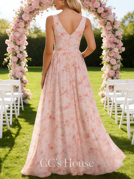 - A-line Elegant V-Neck Floor-Length Chiffon Bridesmaid Dress