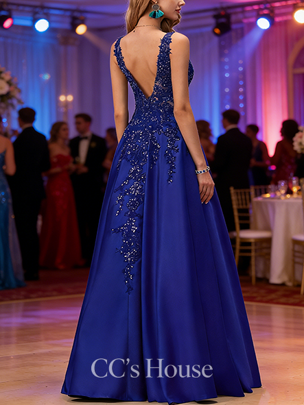 - A-line Flowing V-Neck Floor-Length Chiffon Prom Dresses