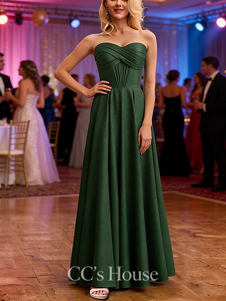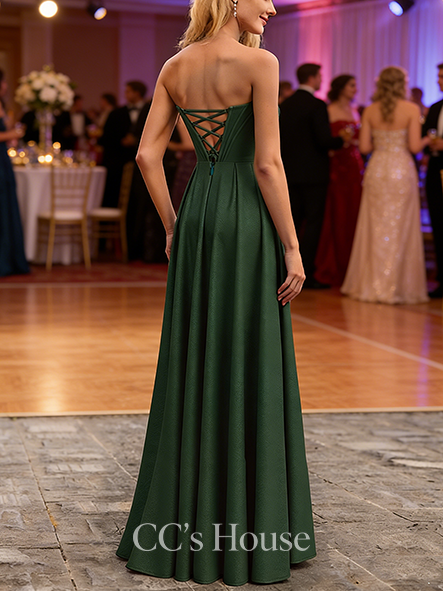 - A-line Elegant V-Neck Sweep Train Satin Prom Dresses