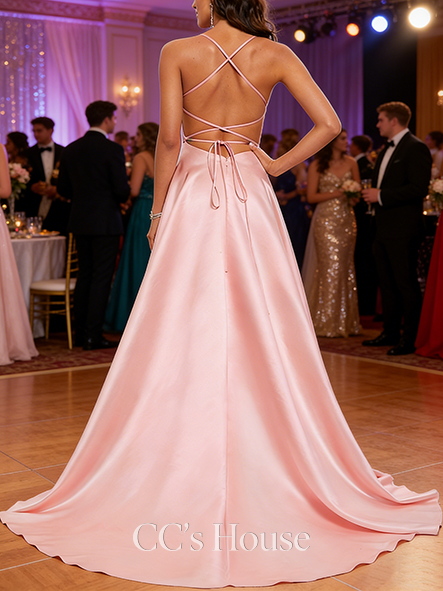 - A-line Sheer Square Sweep Train Chiffon Prom Dresses