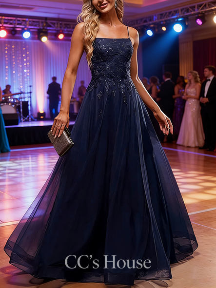 - A-line Airy Square Floor-Length Chiffon Prom Dresses
