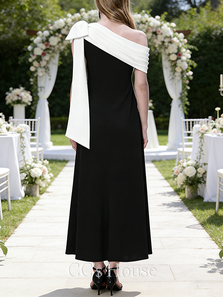 • A-line Wedding Guest Dress Polished One Shoulder Ankle-Length Stretch Crepe Evening Dress With Pleated