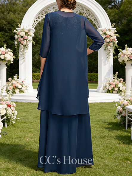 • A-line Wedding Guest Dress Romantic Scoop Illusion Asymmetrical Chiffon Lace Mother of the Bride Dress With Sequins Beading Cascading Ruffles