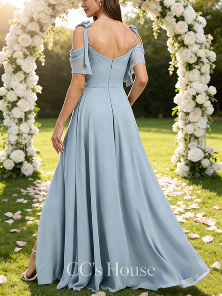 - A-line Soft V-Neck Floor-Length Chiffon Bridesmaid Dress