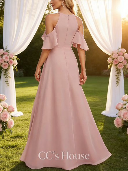 - A-line Clean V-Neck Floor-Length Chiffon Bridesmaid Dress