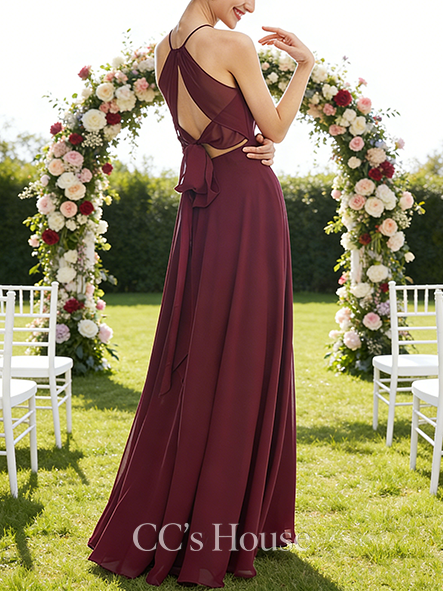 - A-line Classic Scoop Floor-Length Satin Bridesmaid Dress