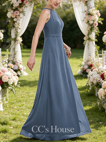 - A-line Pure V-Neck Floor-Length Chiffon Bridesmaid Dress