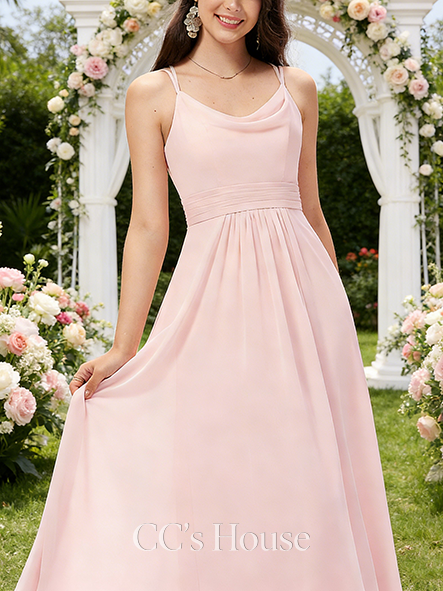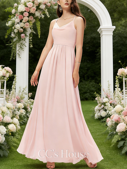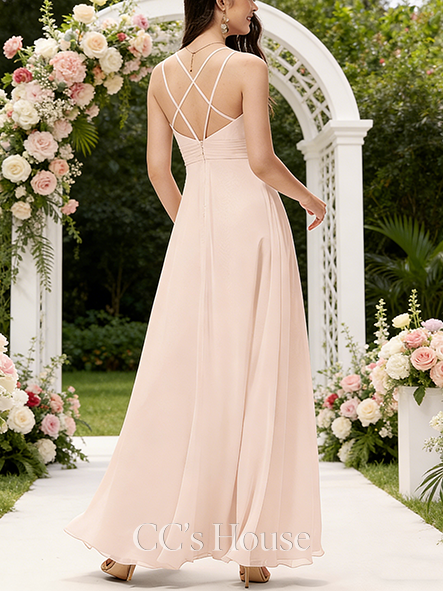 - A-line Soft V-Neck Floor-Length Chiffon Bridesmaid Dress
