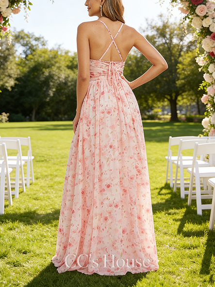 - A-line Bold V-Neck Asymmetrical Chiffon Bridesmaid Dress