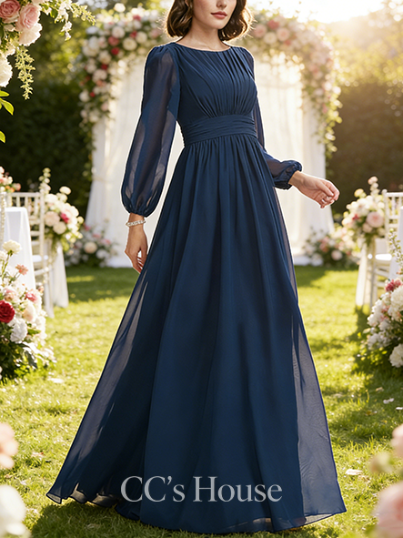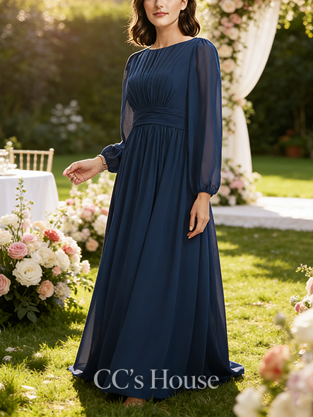 • A-line Cute Scoop Floor-Length Chiffon Bridesmaid Dress With Ruffle