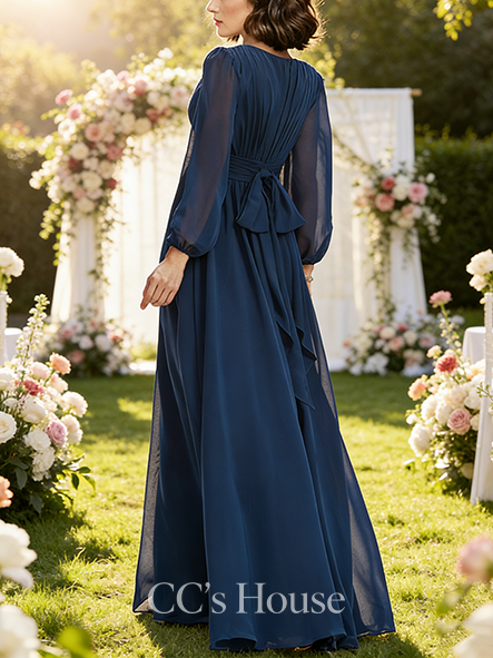 A-line Cute Scoop Floor-Length Chiffon Bridesmaid Dress With Ruffle