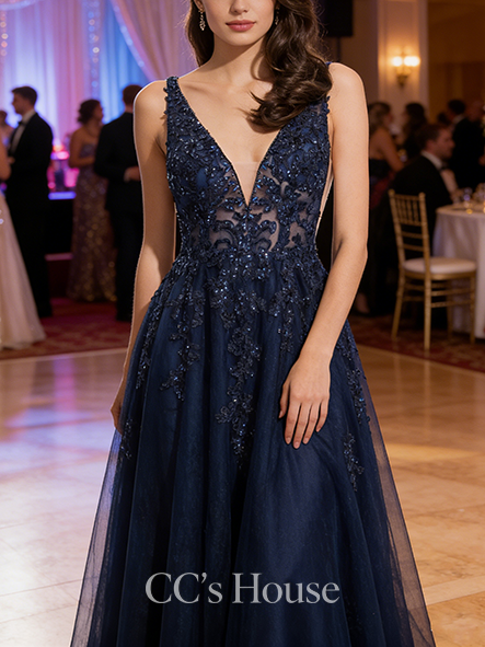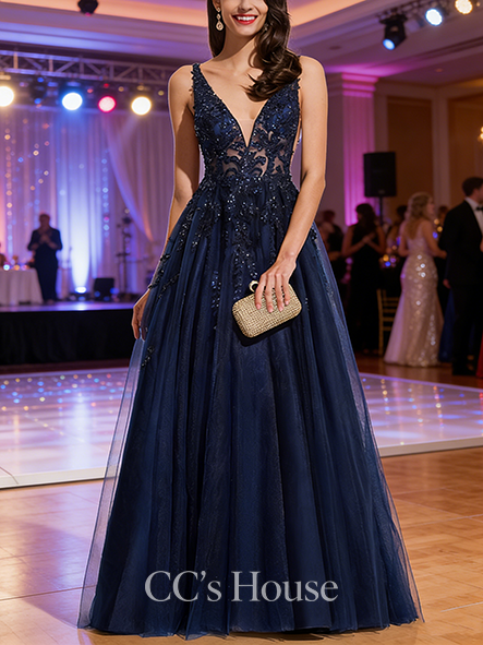 - A-line Satin V-Neck Floor-Length Satin Prom Dresses