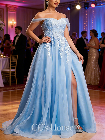 - A-line Elegant V-Neck Sweep Train Satin Prom Dresses