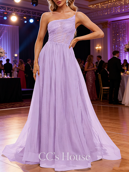 - A-line Airy Square Floor-Length Tulle Prom Dresses