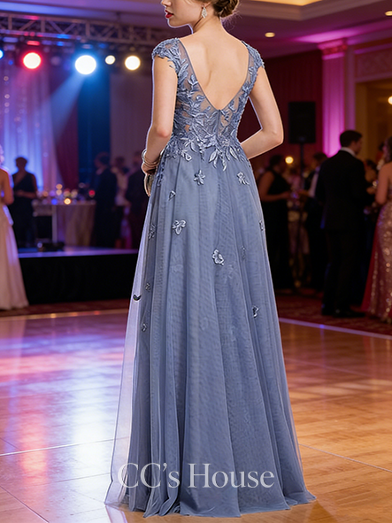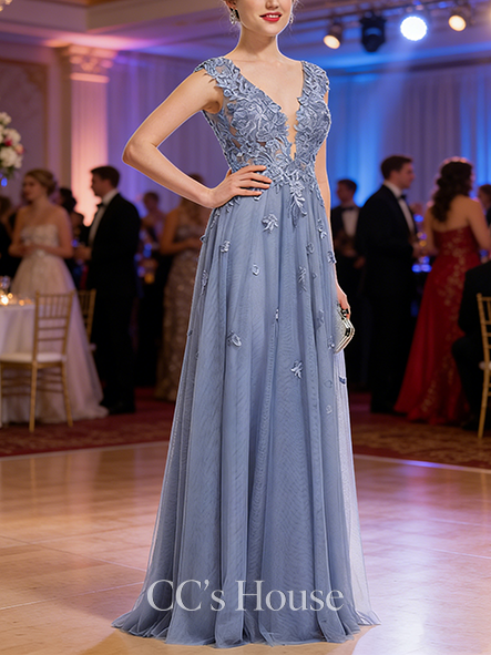 - A-line Airy Square Floor-Length Tulle Prom Dresses