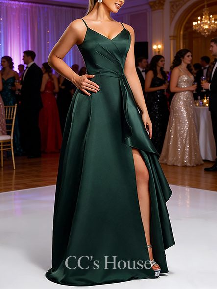 - A-line Satin V-Neck Floor-Length Satin Prom Dresses