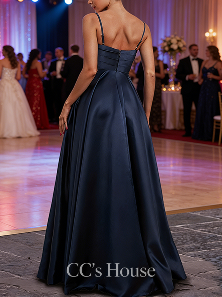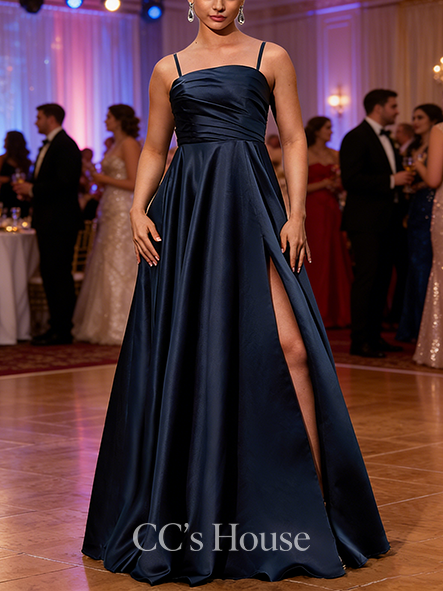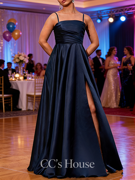 - A-line Satin V-Neck Floor-Length Satin Prom Dresses