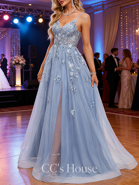 - A-line Airy Square Floor-Length Tulle Prom Dresses