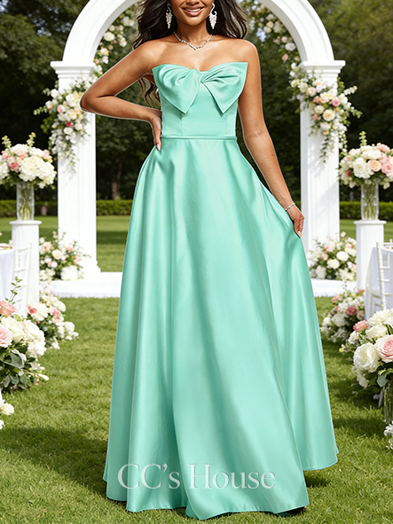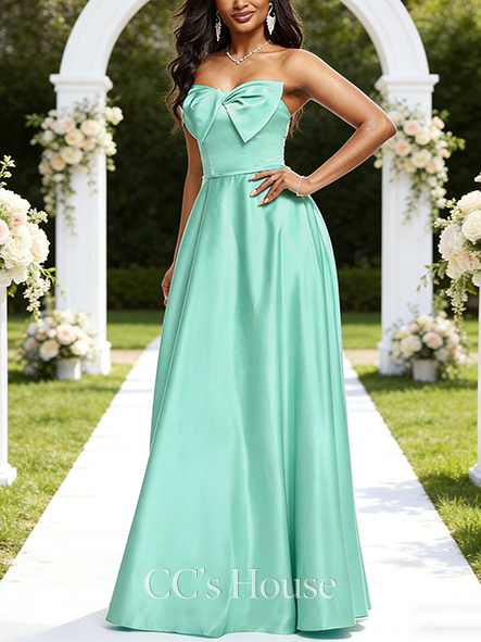 A-line Wedding Guest Dress Gorgeous Sweetheart Floor-Length Satin Prom Dresses With Bow