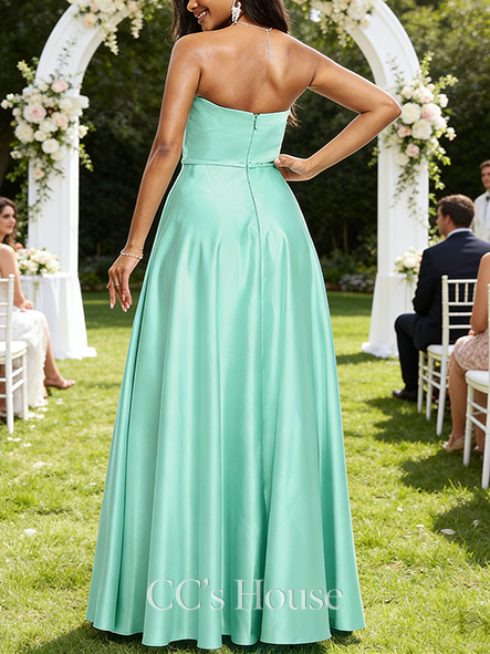 • A-line Wedding Guest Dress Gorgeous Sweetheart Floor-Length Satin Prom Dresses With Bow