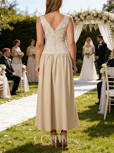 The dress does not include any accessories in the picture, such as gloves, veil, handbag, etc.