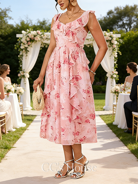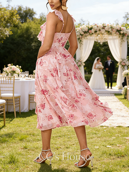 Embellishment: Cascading Ruffles, Floral Print