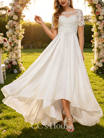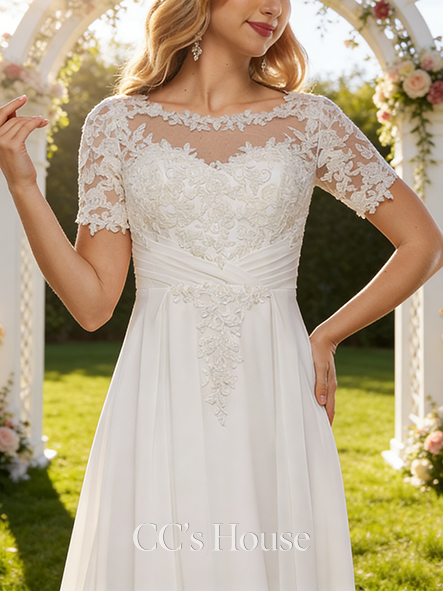 - A-line Delicate Scoop Floor-Length Chiffon Wedding Dress