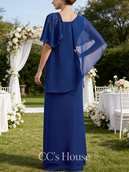 • Fall A-line Graceful Asymmetrical Floor-Length Chiffon Mother of the Bride Dress With Beading Cape Sequins
