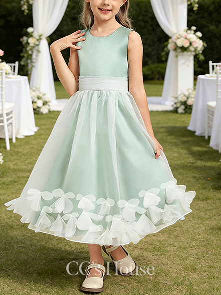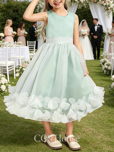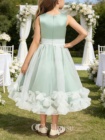 • A-line Fairy Scoop Tea-Length Satin Organza Flower Girl Dress With 3D Floral