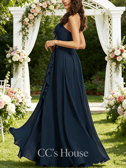 • New Arrival A-line Simple V-Neck Floor-Length Chiffon Bridesmaid Dress