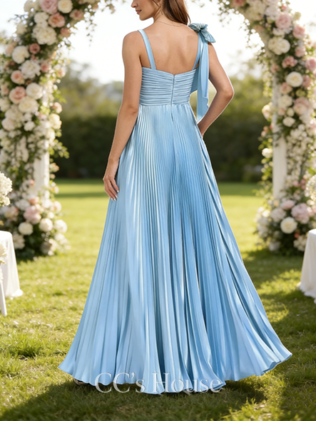 • New Arrival A-line Structured Square Floor-Length Stretch Satin Bridesmaid Dress With Bow Pleated