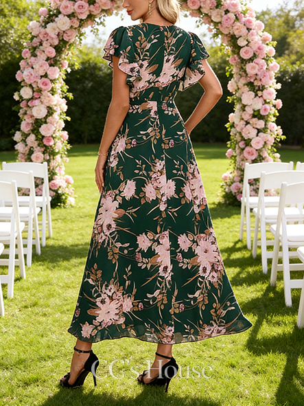 Short A-line Playful V-Neck Tea-Length Chiffon Bridesmaid Dress