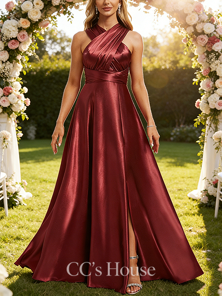 Features: Belt/Sash, Leg Slit, Convertible, Faux Wrap Dresses