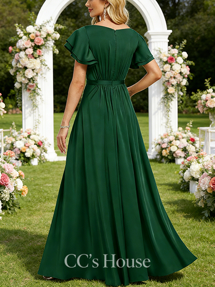 Under $100 A-line Luxurious V-Neck Floor-Length Satin Bridesmaid Dress