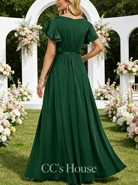Under $100 A-line Pure V-Neck Floor-Length Chiffon Bridesmaid Dress