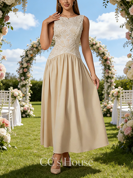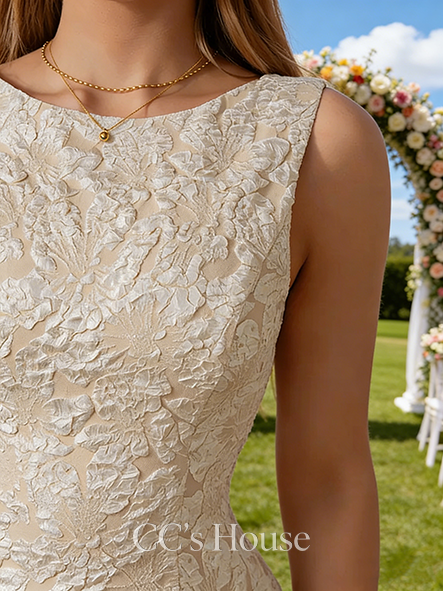 • Boat Neck A-Line Bridal Gown - Tea-Length Jacquard Wedding Dress with Elegant Cape