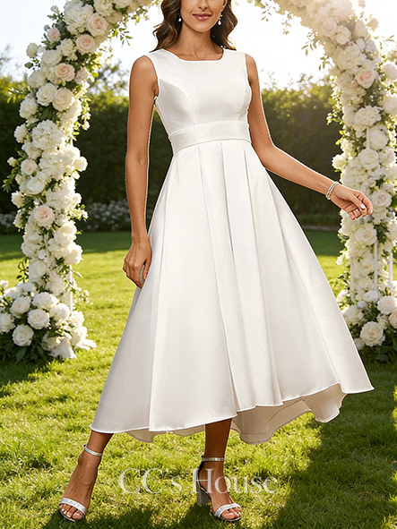 Elegant A-Line Square Neck Wedding Dress - Asymmetrical Satin Bridal Gown
