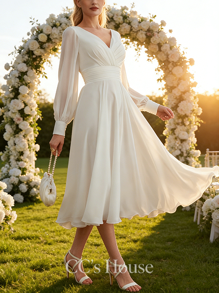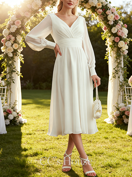- A-line Elegant V-Neck Court Train Lace Chiffon Wedding Dress