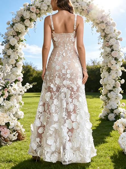 - A-line Elegant Square Asymmetrical Satin Wedding Dress