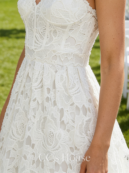 - A-line Elegant V-Neck Court Train Lace Chiffon Wedding Dress