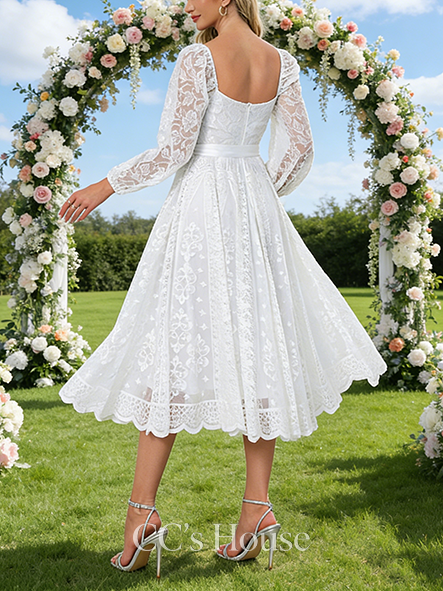 • Sweetheart Neck A-Line Bridal Gown - Tea-Length Lace Wedding Dress