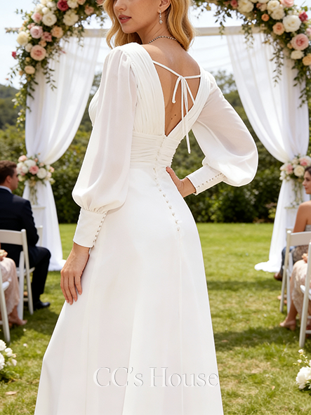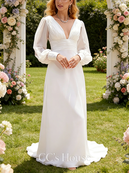 • Timeless A-Line V-Neck Floor-Length Chiffon Wedding Dress