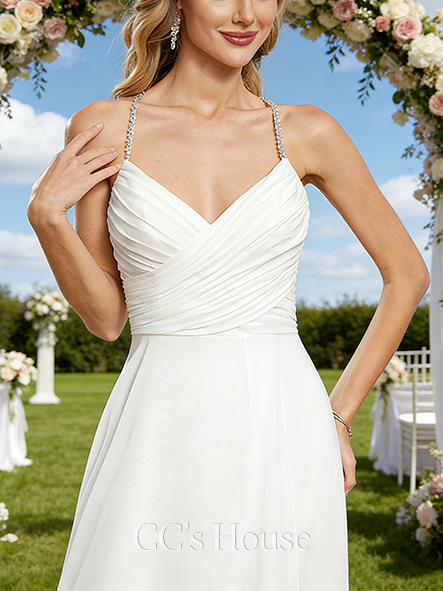 V-Neck A-Line Bridal Gown - Floor-Length Chiffon Wedding Dress with Sequins and Beading